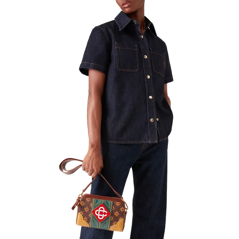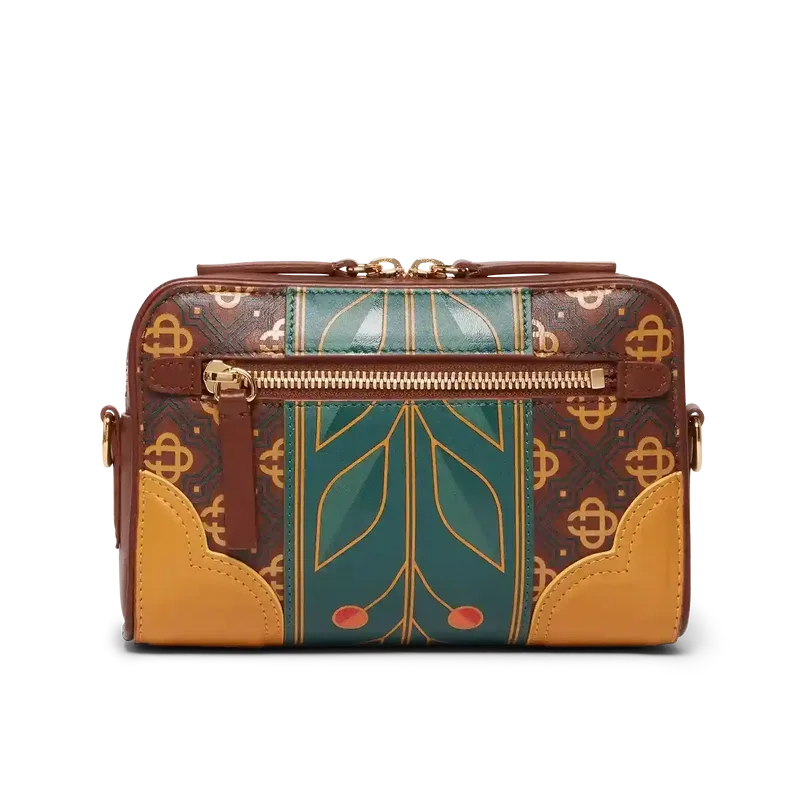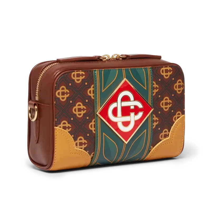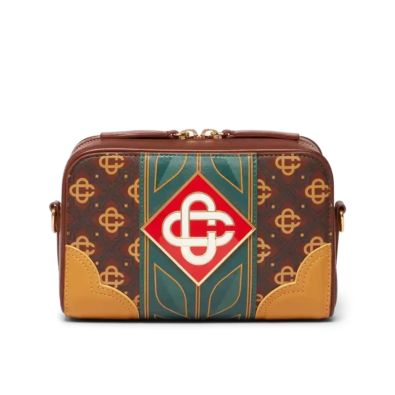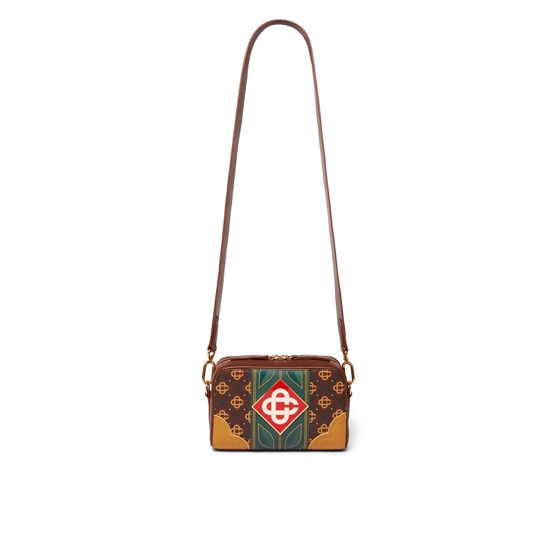 El bolso bandolera marrón con monograma está confeccionado en piel italiana y adornado con el emblemático logotipo de diamantes de la casa en el lateral. Se completa con el emblemático motivo de laurel de la casa, un cierre de cremallera, una correa para el hombro, un bolsillo exterior con cremallera y un bolsillo interior abierto. Se suministra con una caja de regalo, una bolsa protectora con la marca y un folleto con los detalles del producto.