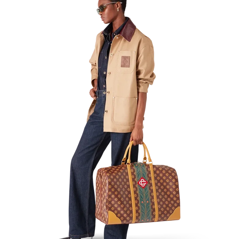 La bolsa de fin de semana Monogram marrón está confeccionada en piel italiana y adornada con el emblemático logotipo de diamantes de la casa en el lateral. Se completa con el emblemático motivo de laurel de la casa, asas, cierre de cremallera, una correa para el hombro y un bolsillo interior. Se suministra con una caja de regalo, una bolsa protectora con la marca y un folleto con los detalles del producto.