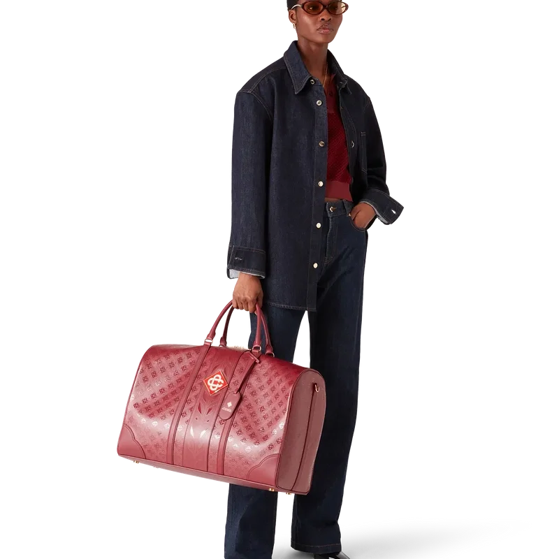 El bolso de fin de semana de la tienda de París es un refinado diseño de viaje confeccionado en piel de becerro italiana, adornado con el emblemático logotipo de diamantes de la Maison en el lateral. Se completa con el emblemático motivo de laurel a tono, asas, cierre de cremallera, correa para el hombro, etiqueta de piel y un bolsillo interior. Se suministra con una caja de regalo, una bolsa protectora con la marca y un folleto con los detalles del producto.