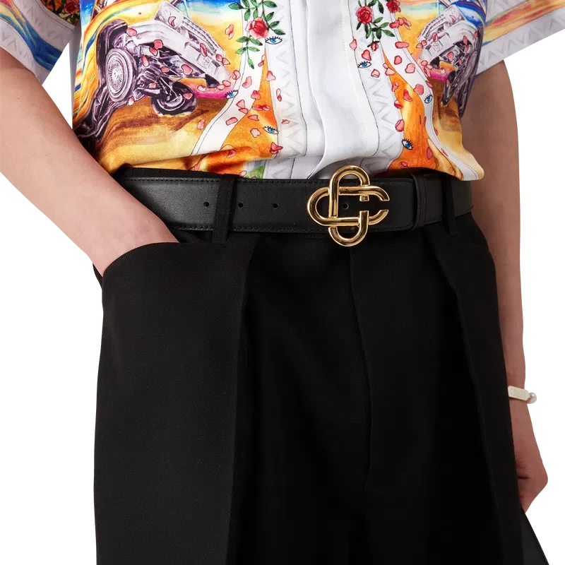 El cinturón con logotipo Cc negro cuenta con una correa confeccionada en piel de cabra italiana. Rematado con la hebilla entrelazada Cc característica de la casa, fabricada en latón chapado en oro.