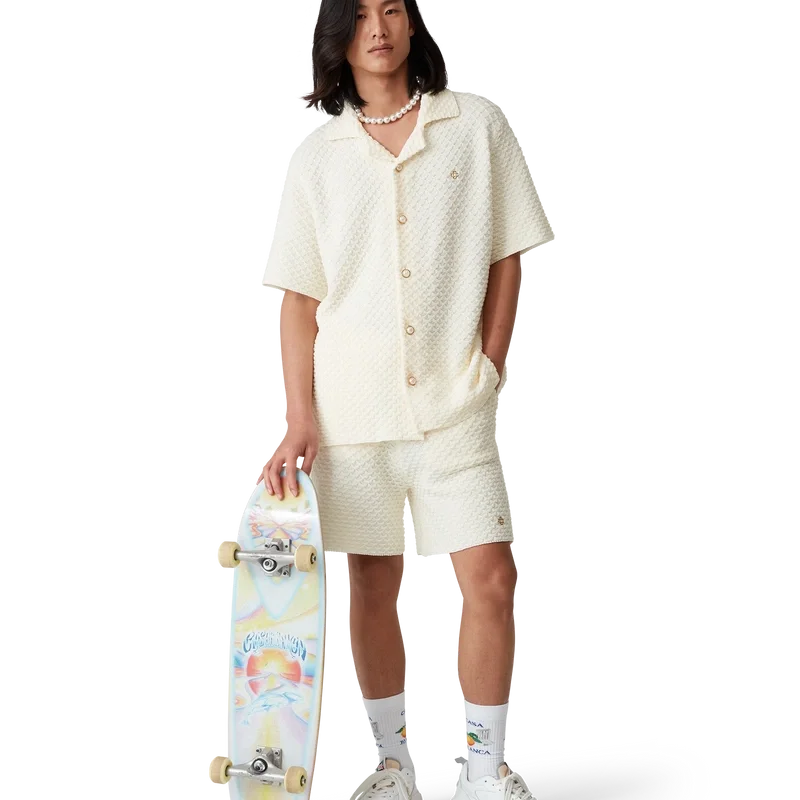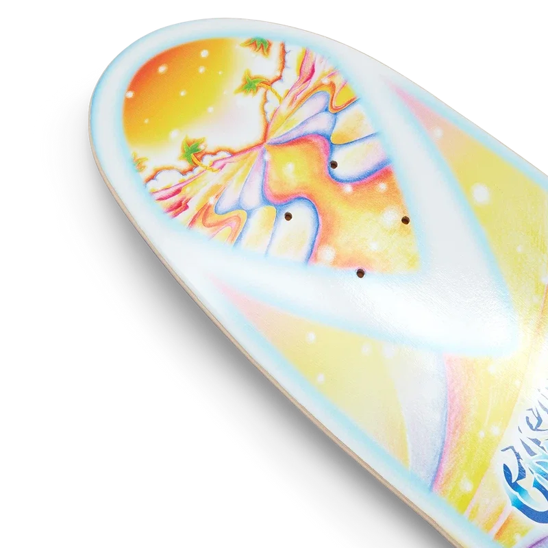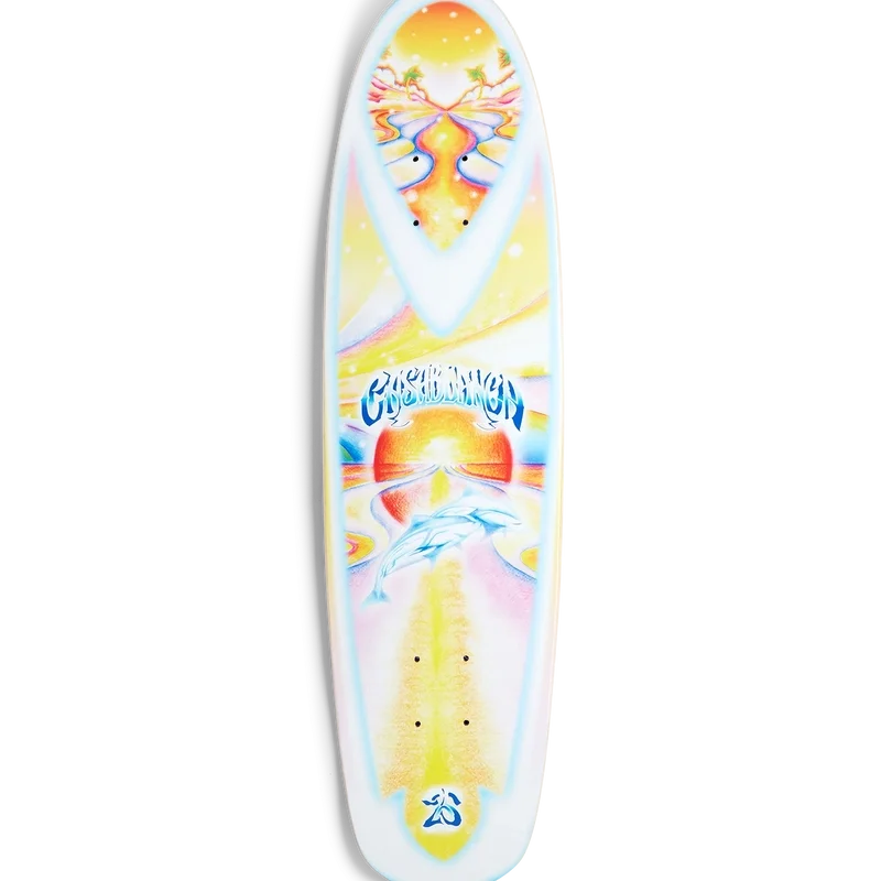La tabla de skate cruiser Casablanca Ss25 es un artículo de coleccionista de edición limitada, fabricada con arce duro canadiense de primera calidad y cola al agua, con el diseño psicodélico Nirvana de la casa en la parte inferior. Completada con el logotipo de Casablanca, esta pieza ha sido creada especialmente para nuestro desfile Printemps-Été 2025. Cada tabla de 8,125″ viene en un color de barniz superior surtido y un embalaje 100 % reciclable. Los colores del barniz superior se surten al azar de una paleta seleccionada de rojo, marrón, negro, azul y amarillo en el momento de la compra.