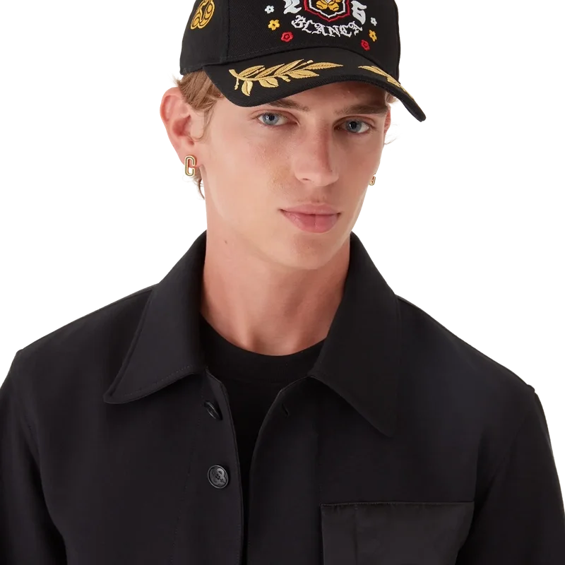 La gorra con laurel bordado BōSōZoku es un modelo clásico de béisbol confeccionado en tejido de sarga de algodón con el diseño de esta temporada, en el que nos hemos inspirado en la subcultura japonesa del BōSōZoku como uno de nuestros temas principales. El contraste entre los elementos gráficos y el texto nos pareció muy al estilo de Casablanca. El diseño es poco convencional, pero la composición está cuidadosamente equilibrada, lo que le da un aire único y a la vez armonioso. Se completa con una visera con detalle de hoja de laurel dorada y una hebilla ajustable chapada en oro.