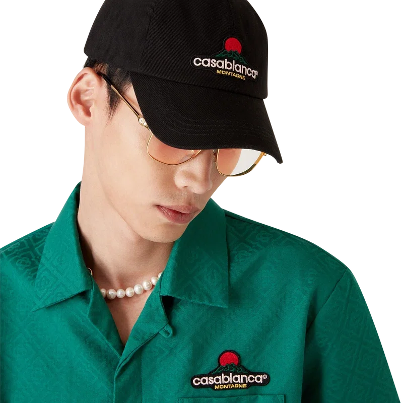 La gorra Montagne es un modelo clásico de béisbol que presenta el diseño de la temporada —un logotipo que a primera vista parece una montaña, pero que al mirarlo más de cerca se lee como «Casa»— en el centro. Confeccionada en tejido de algodón, la gorra cuenta con una visera y una hebilla ajustable chapada en oro.