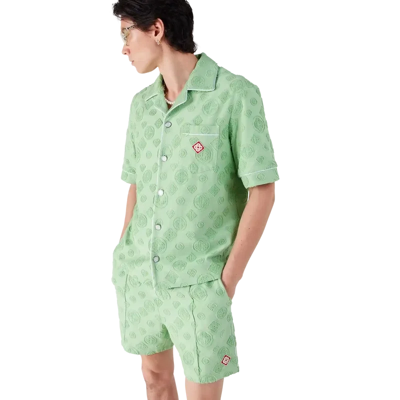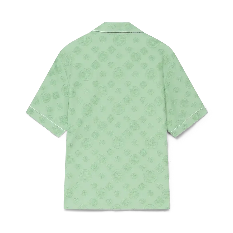 La camisa de manga corta de rizo con monograma es un diseño que presenta el estampado de Diamond Monogram característico de la casa. Se completa con un bolsillo en el pecho, ribetes en contraste, botones de perla con borde dorado característicos y cuello cubano.