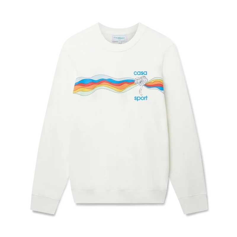 La sudadera unisex de algodón orgánico serigrafiada Mind Vibrations presenta un diseño de temporada inspirado en la medicina de la Tierra y la capacidad de la naturaleza para sanar el espíritu. Con cuello redondo clásico, mangas largas y etiqueta de la marca Casablanca Paris, diseñada para un ajuste holgado.