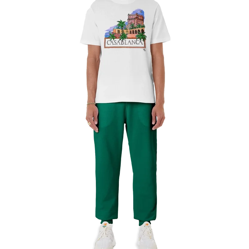 La camiseta de algodón orgánico Amour Maroc presenta una de las ilustraciones más emblemáticas de la marca, «Maison», lanzada por primera vez en 2019. Cuenta con un cuello redondo clásico, mangas cortas y la etiqueta de la marca Casablanca Paris, diseñada para un ajuste holgado.