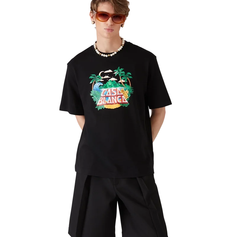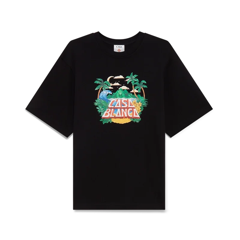La camiseta Casa Beach Wave es un diseño estampado de manga corta confeccionado en tejido de algodón orgánico y presenta un diseño característico que hace referencia a las camisetas de recuerdo que uno compraría en unas vacaciones en la playa. Se completa con un clásico cuello redondo.