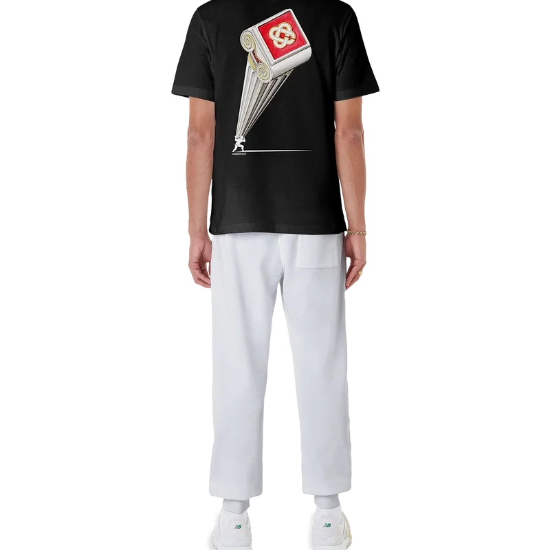La camiseta Leaning Column es un diseño estampado de manga corta confeccionado en tejido de algodón orgánico que presenta el diseño de temporada de la marca, inspirado en un cartel de cine vintage y en la Antigua Grecia. Acabada con un cuello redondo clásico.<!–