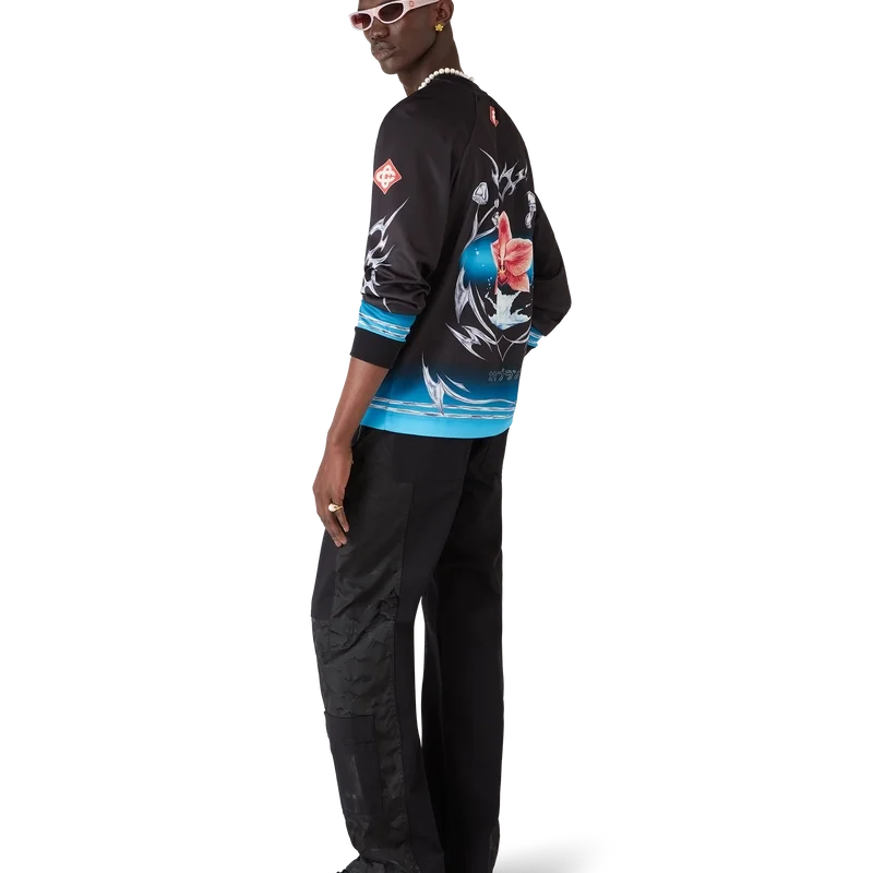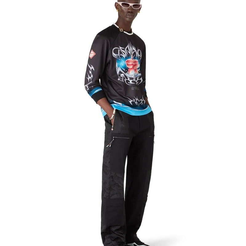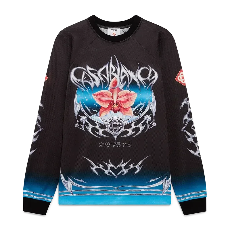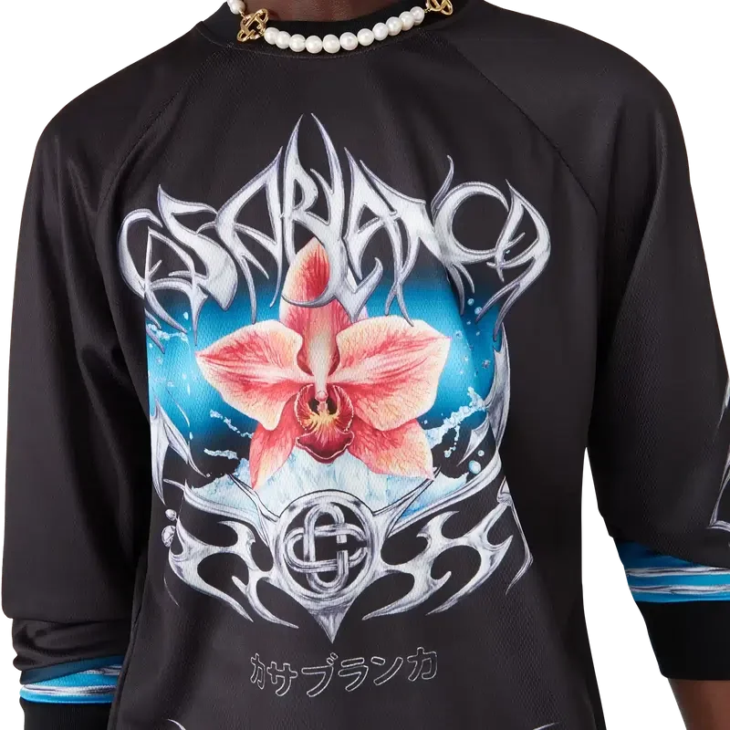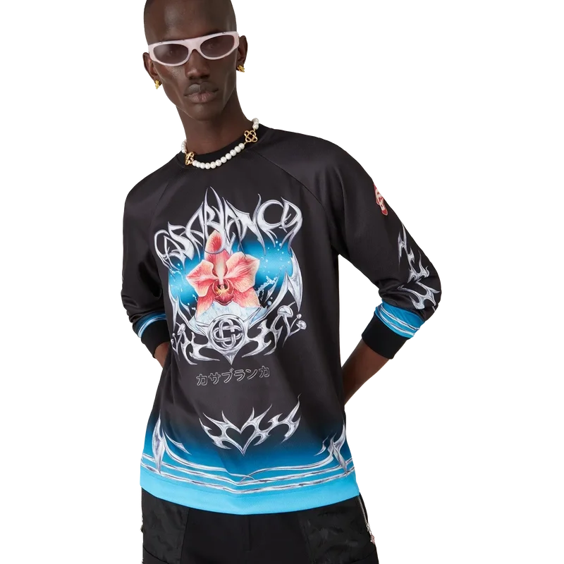La camiseta de fútbol de manga larga Blade presenta un diseño estampado con el motivo Blade de esta temporada, que juega con el contraste entre dos sensaciones opuestas: el filo de la hoja y el frío cromo plateado, en contraste con la calidez de la naturaleza, como los tonos rosa y rojo intensos de una flor de orquídea. La incorporación de gotas de agua aporta un elemento fresco y nítido al diseño. Rematada con puños y cuello acanalados.