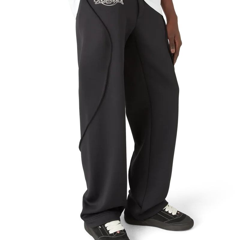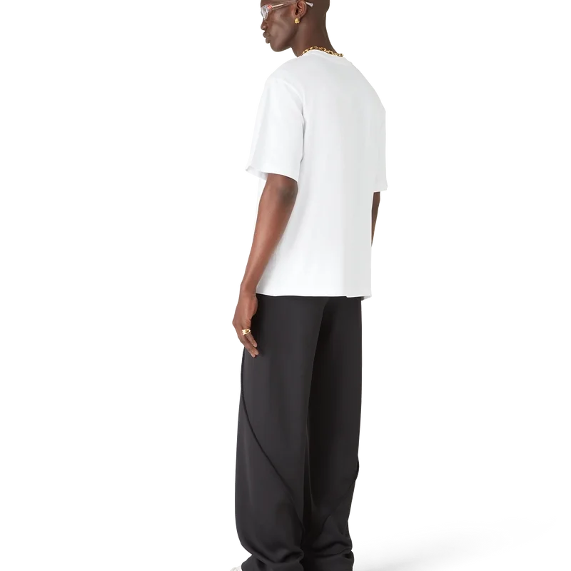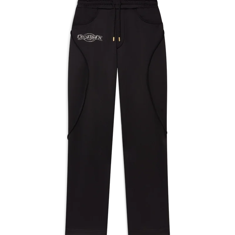 Los pantalones de chándal oversize con paneles presentan un diseño de pierna recta y lucen el logotipo metálico de la casa. Se completan con una cintura elástica, cordón de ajuste con puntas doradas, detalles de paneles cosidos, bolsillos delanteros inclinados y un bolsillo trasero ribeteado con cierre de cremallera.
