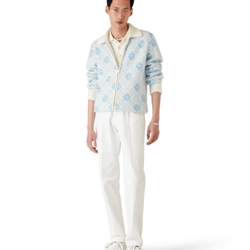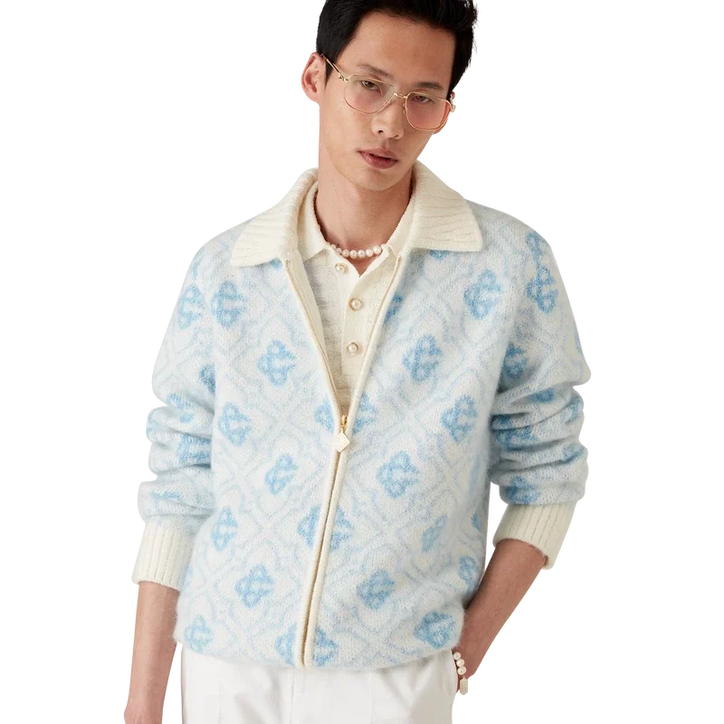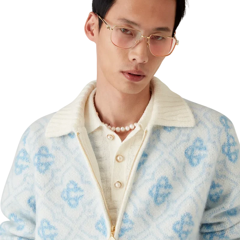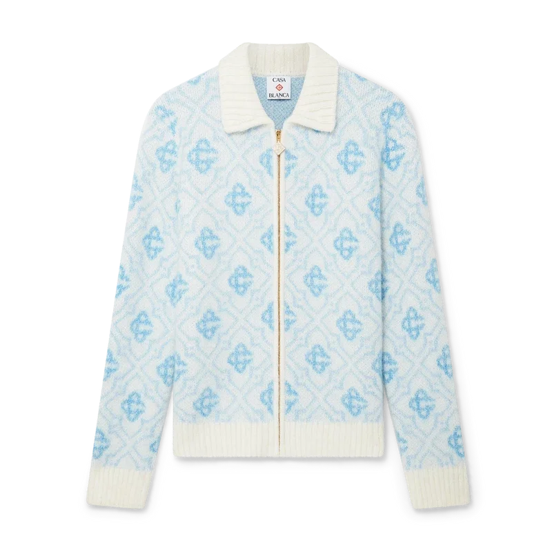El jersey con cremallera de mohair Monogram es un diseño Monogram de manga larga confeccionado en tejido de mohair. Cuenta con cierre de cremallera, tirador de cremallera con el emblemático logotipo de rombos, cuello, puños y bajo acanalados.