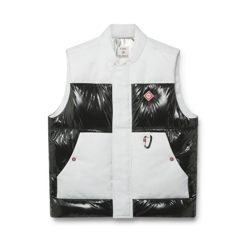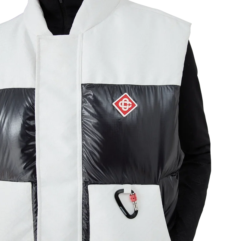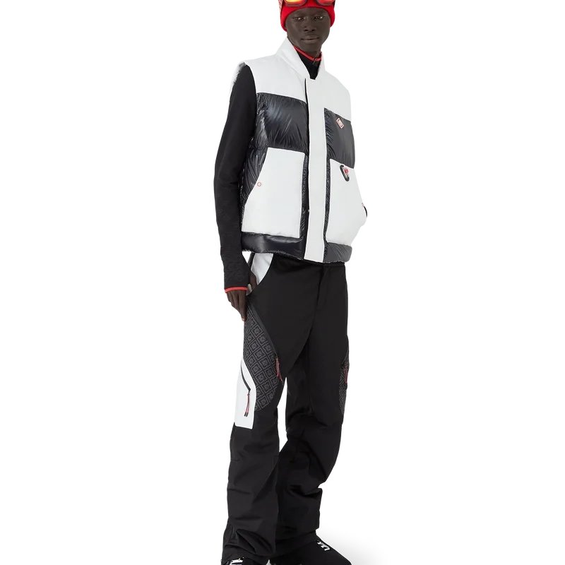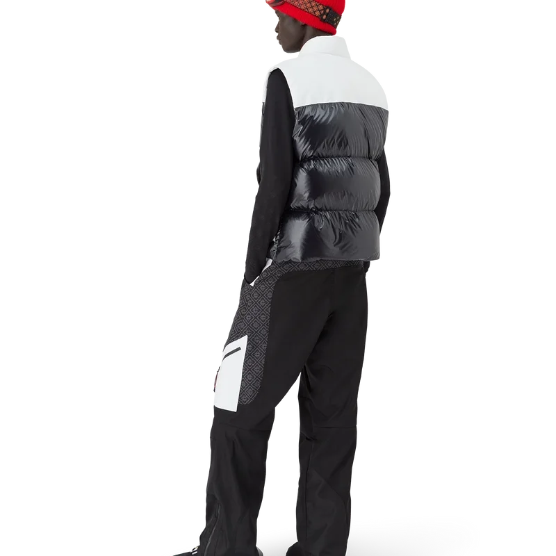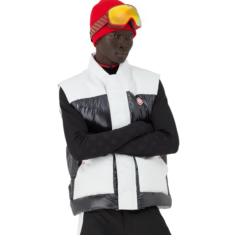 El chaleco de esquí Ripstop Down es una prenda de ropa de abrigo de diseño refinado confeccionada en tejido Cc Ripstop y con un relleno contrastante de plumón y plumas en color negro. Inspirado en el paisaje montañoso de Japón, donde antiguos templos emergen de profundos ventisqueros. Se inspira en la dramática interacción de las estructuras de madera oscura contra los brillantes paisajes blancos y los árboles desnudos de invierno que enmarcan cascadas heladas.