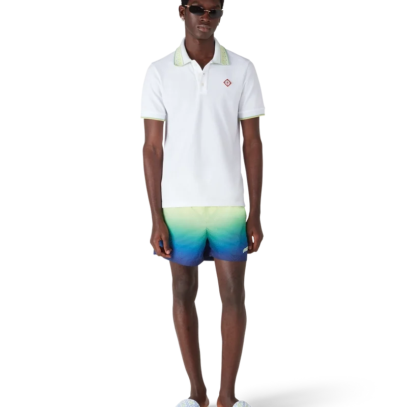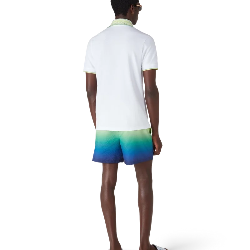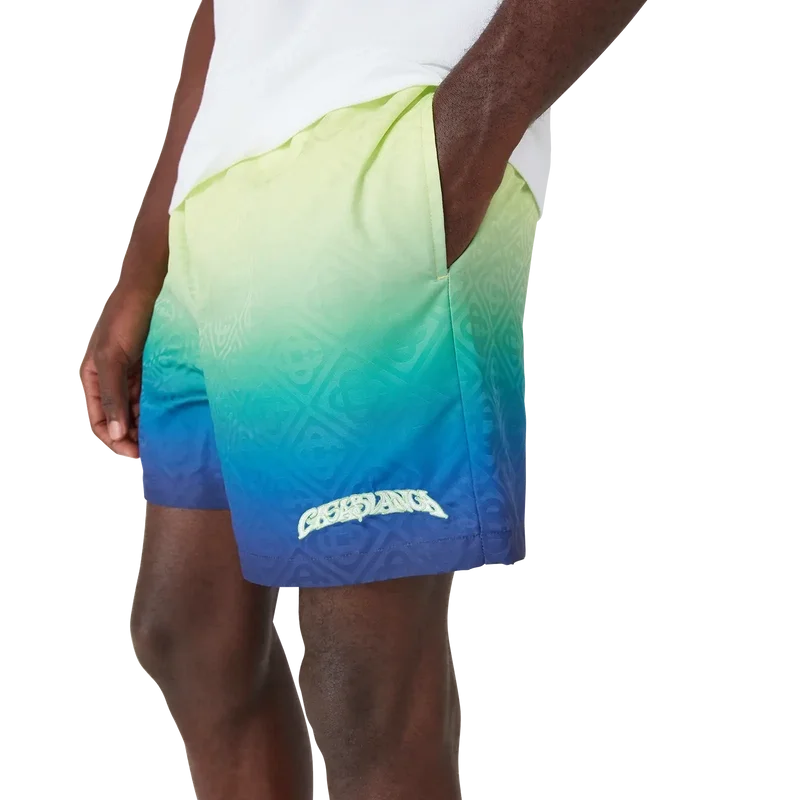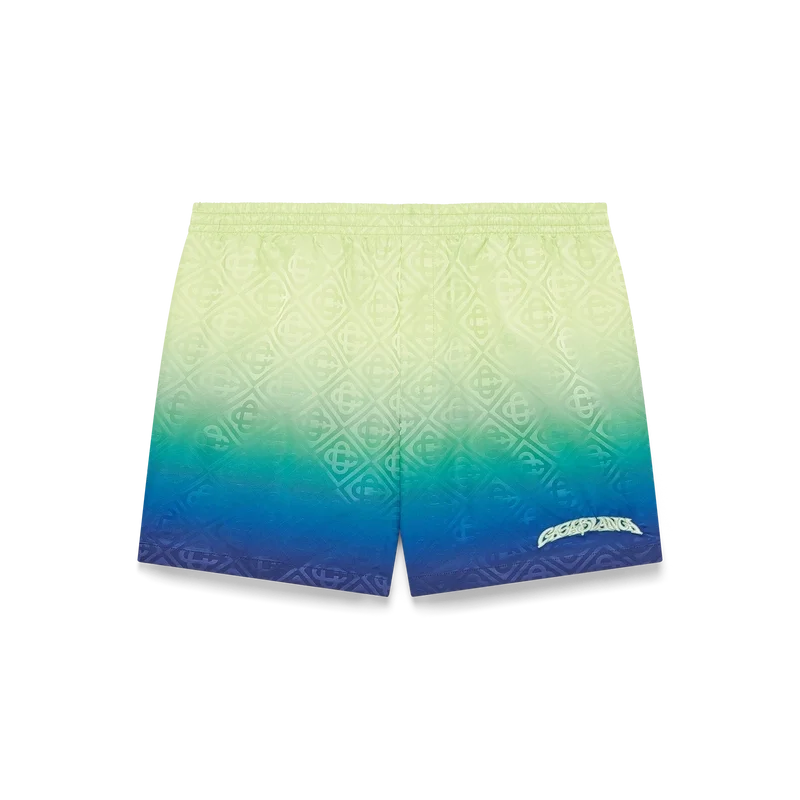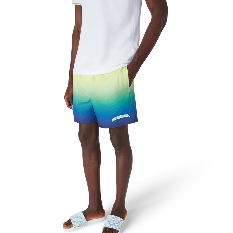 Los bañadores Gradient Monogram son pantalones cortos técnicos refinados con detalles degradados. Cuentan con una cintura elástica, cierre con cordón, bolsillos laterales en las costuras y el patrón Monogram característico de la casa, que encarna la sofisticada elegancia de Apras-Sport.