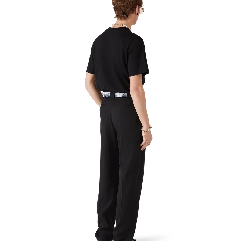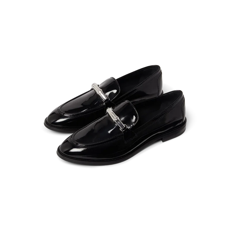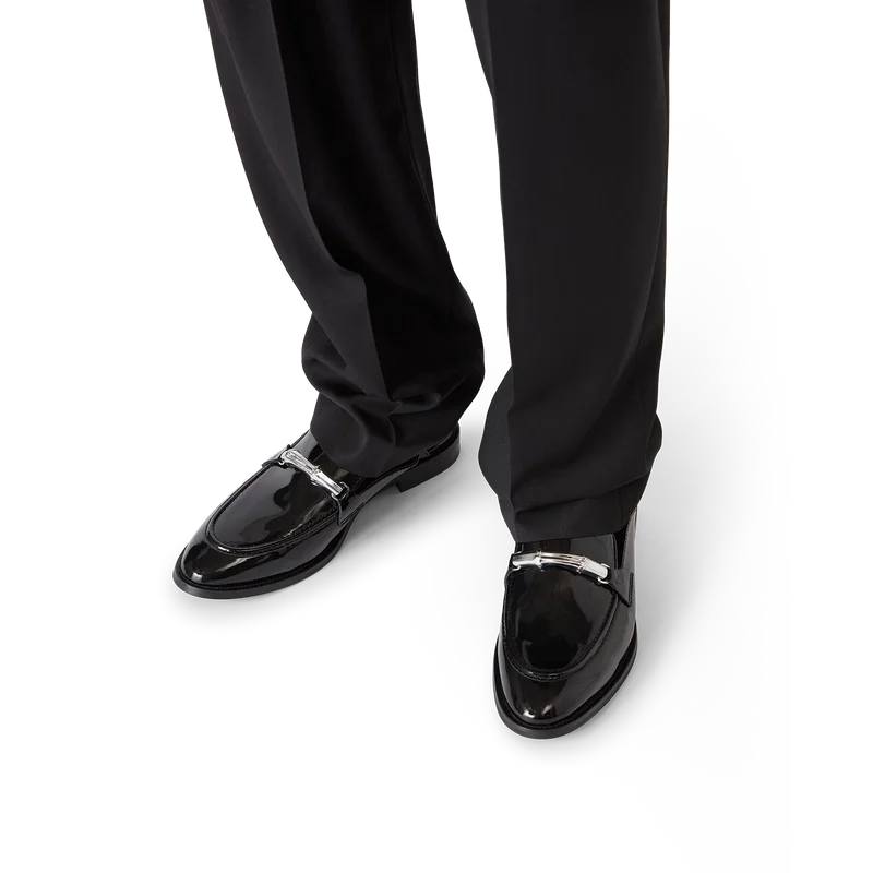 El mocasín Bamboo negro es un modelo plano confeccionado con parte superior de piel de becerro italiana. Cuenta con nuestra icónica tira de bambú, forro de piel, suela de piel, herrajes chapados en oro y un tacón de bloque de 10 mm.