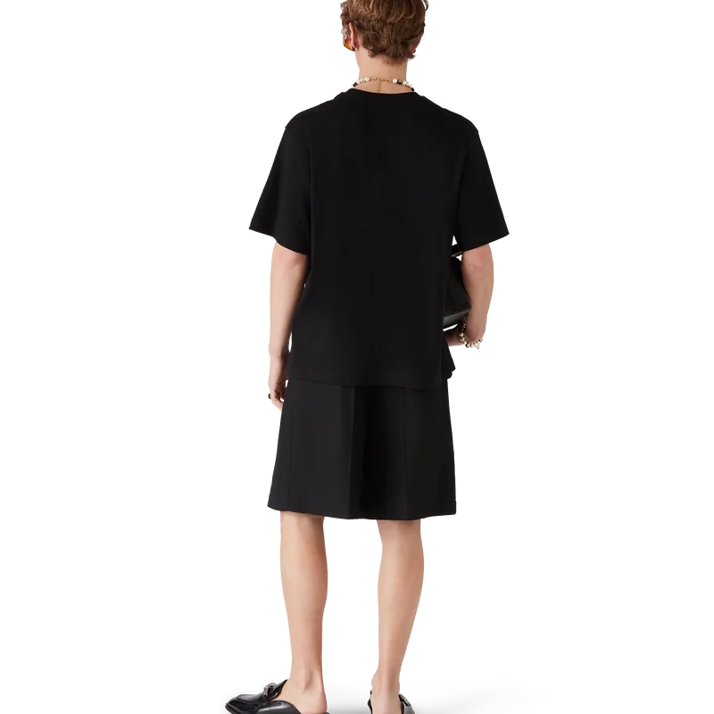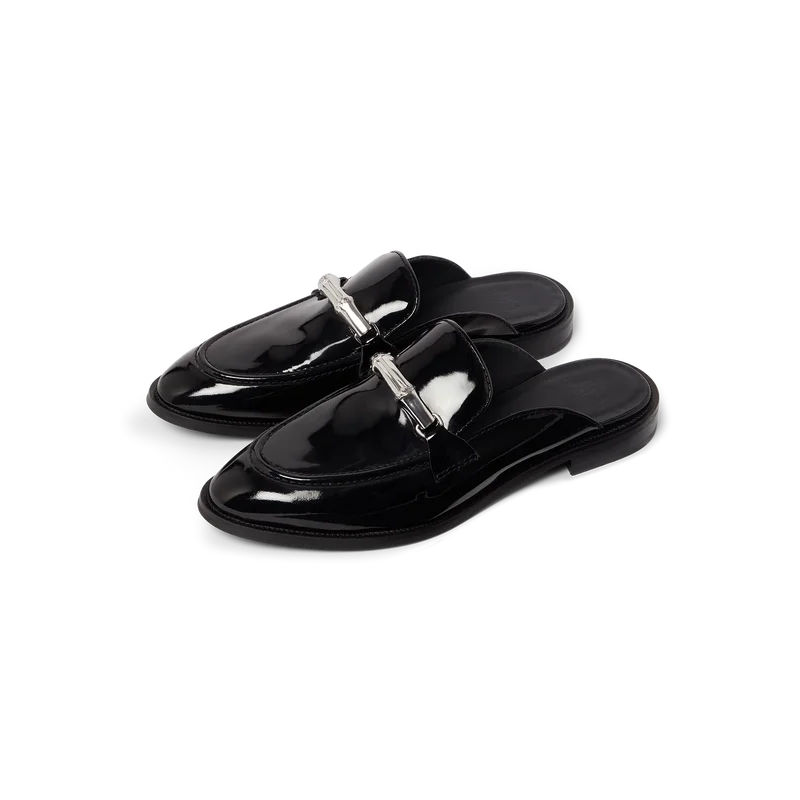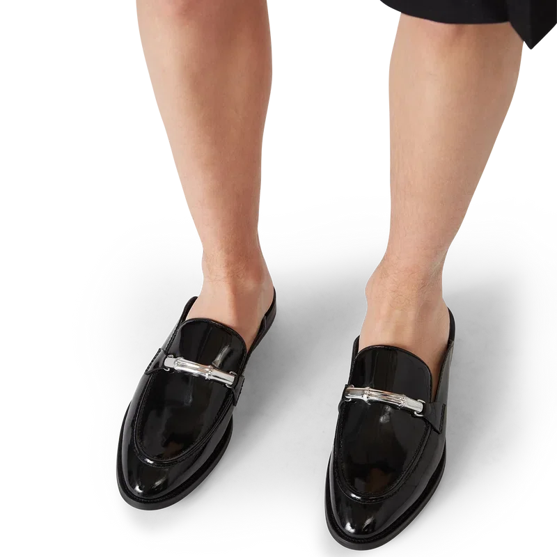 El mocasín sin cordones Bamboo negro es un diseño plano sin talón y con puntera cerrada, confeccionado con una parte superior de piel de becerro italiana. Se completa con nuestra icónica correa de bambú, forro de piel, suela de piel, herrajes chapados en oro y un tacón de bloque de 10 mm.