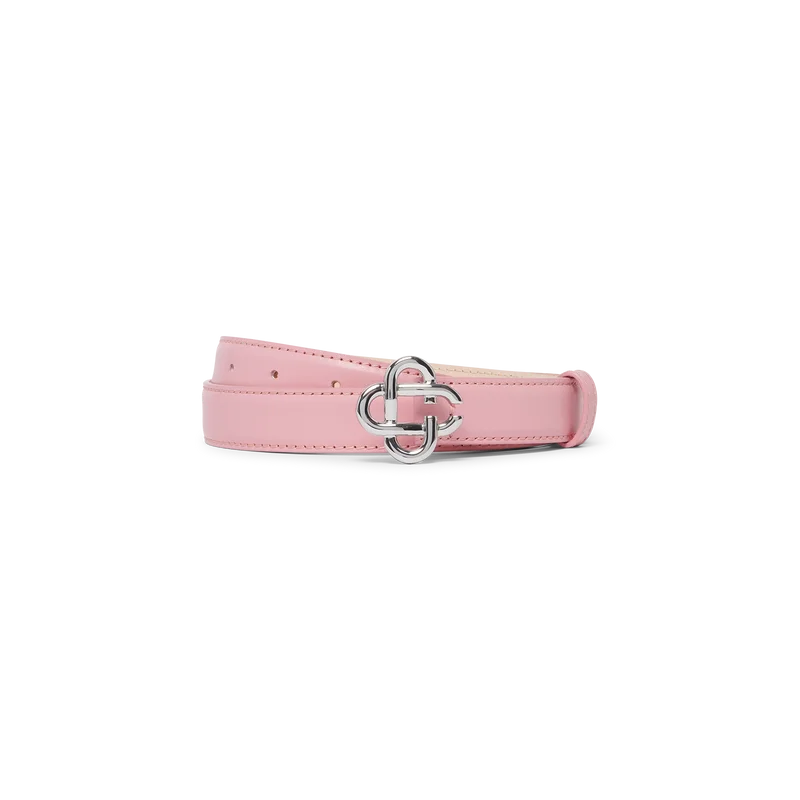 El cinturón con hebilla y logotipo CC rosa para mujer cuenta con una correa confeccionada en piel de becerro italiana. Se completa con la hebilla CC entrelazada característica de la casa, fabricada en latón chapado en plata.
