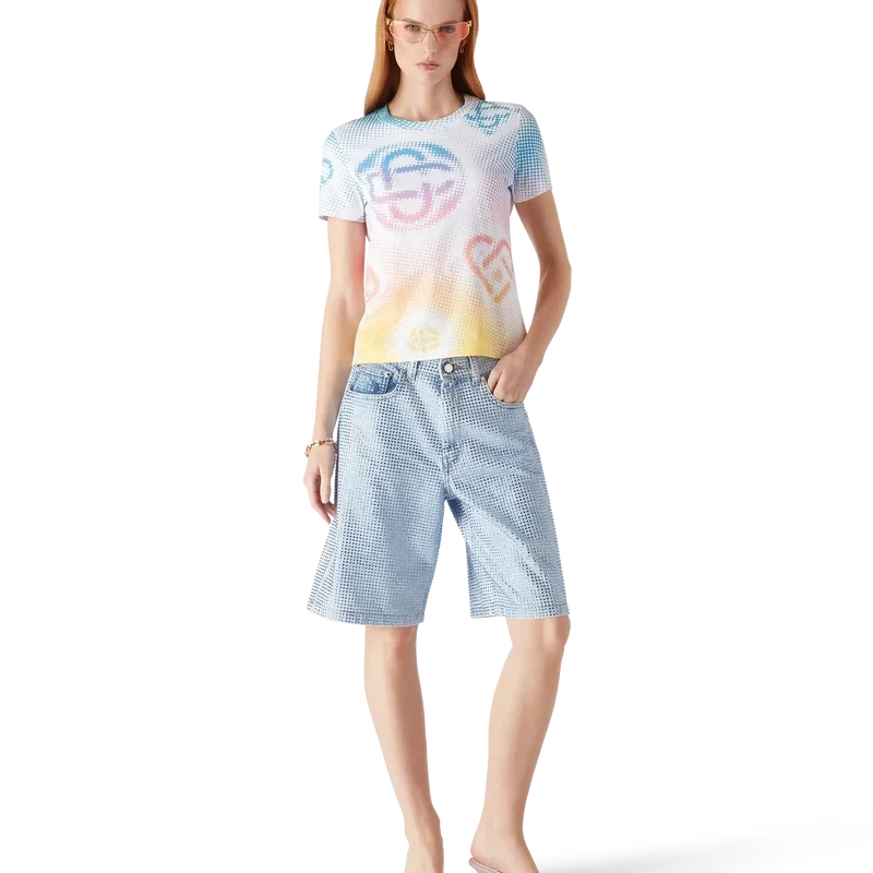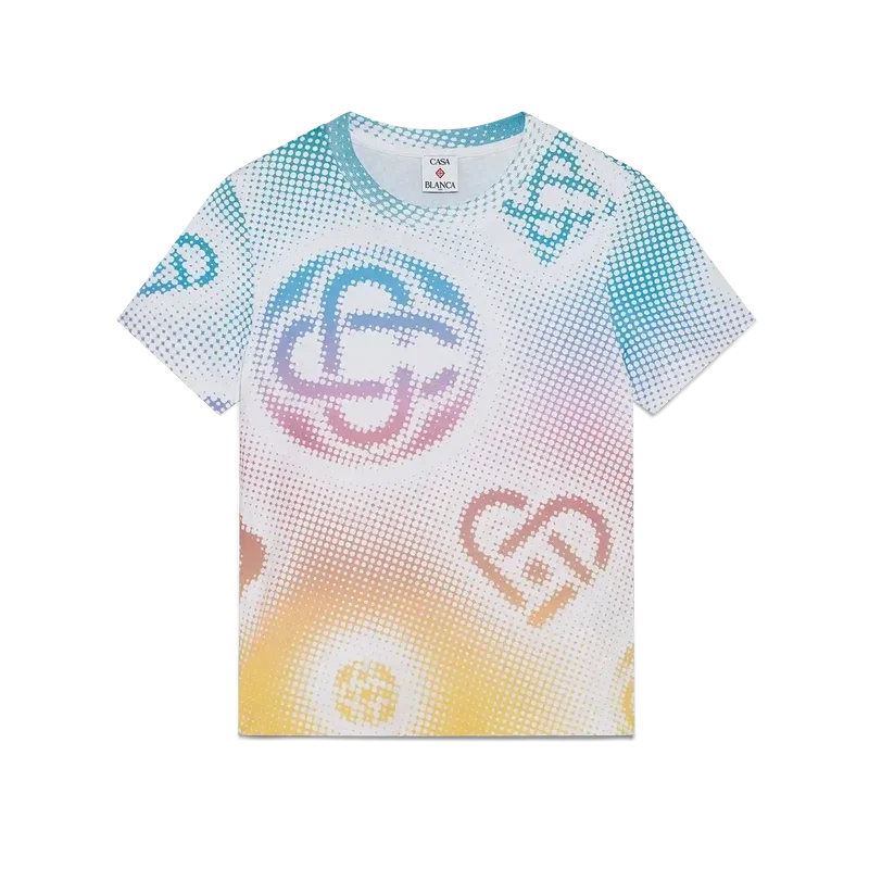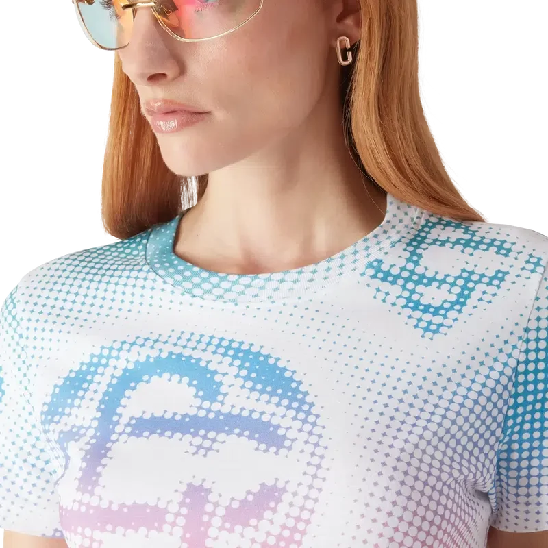 La camiseta ajustada con logotipo en semitonos presenta un diseño estampado multicolor en toda la prenda con el logotipo de la marca en un gráfico refinado. Se completa con un clásico cuello redondo acanalado.