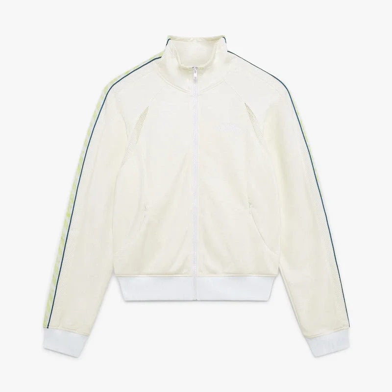 La chaqueta deportiva con cremallera White Laurel presenta un diseño de manga larga y luce el emblemático logotipo Casablanca de la marca. Cuenta con cuello alto, cierre de cremallera, mangas de estilo raglán con detalle de cinta Laurel, bolsillos, puños y bajo acanalados, y una silueta holgada. Diseñada para combinarse con los pantalones deportivos a juego.