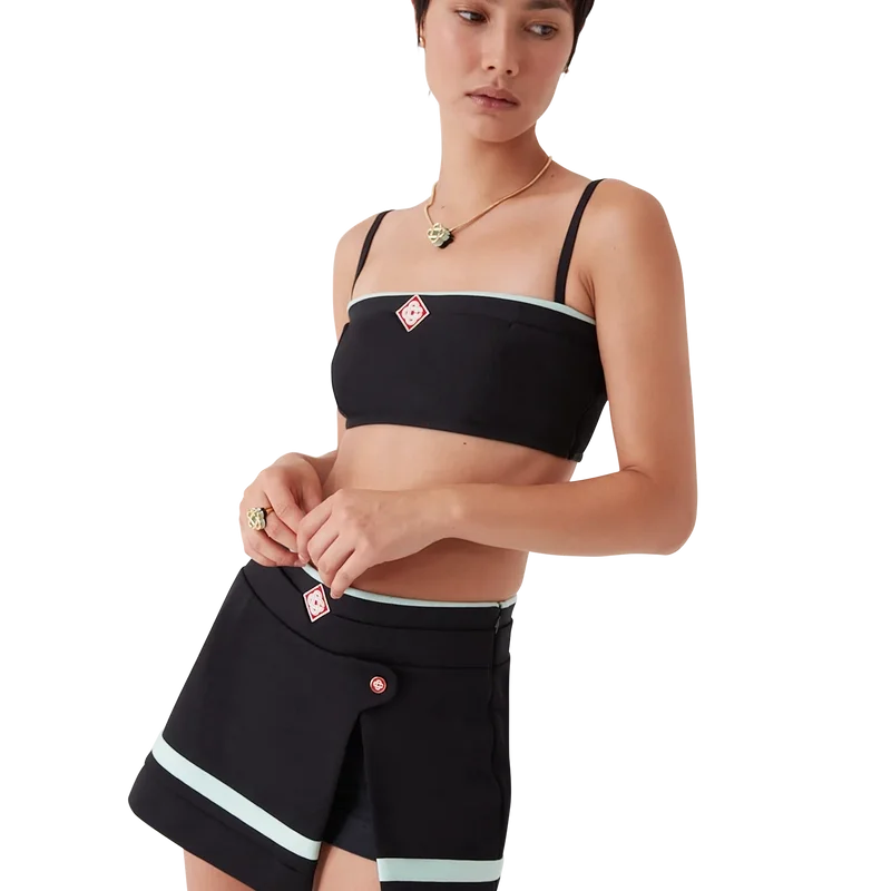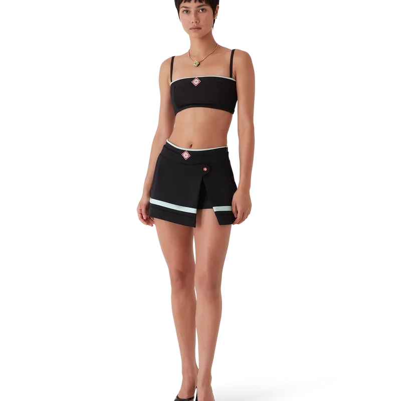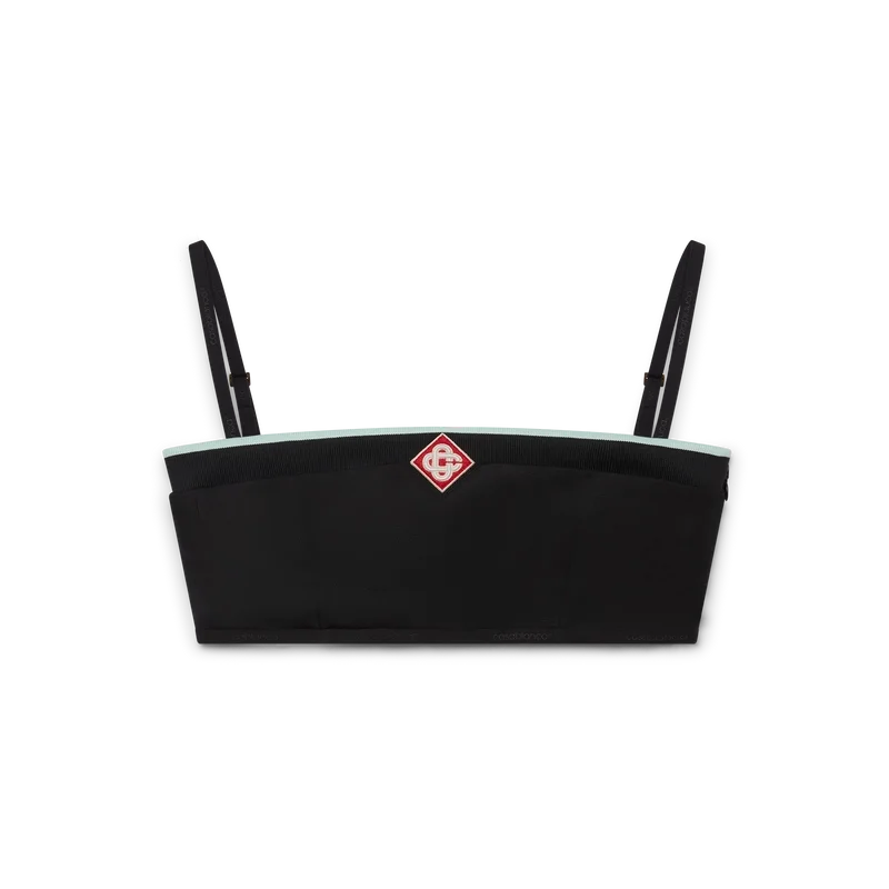 El bralette de tricot es un diseño sin mangas inspirado en la ropa deportiva que luce el emblemático Diamond Monogram de la casa en el centro. Esta prenda está confeccionada en tejido de tricot, con tirantes finos y detalles de bordes rayados.