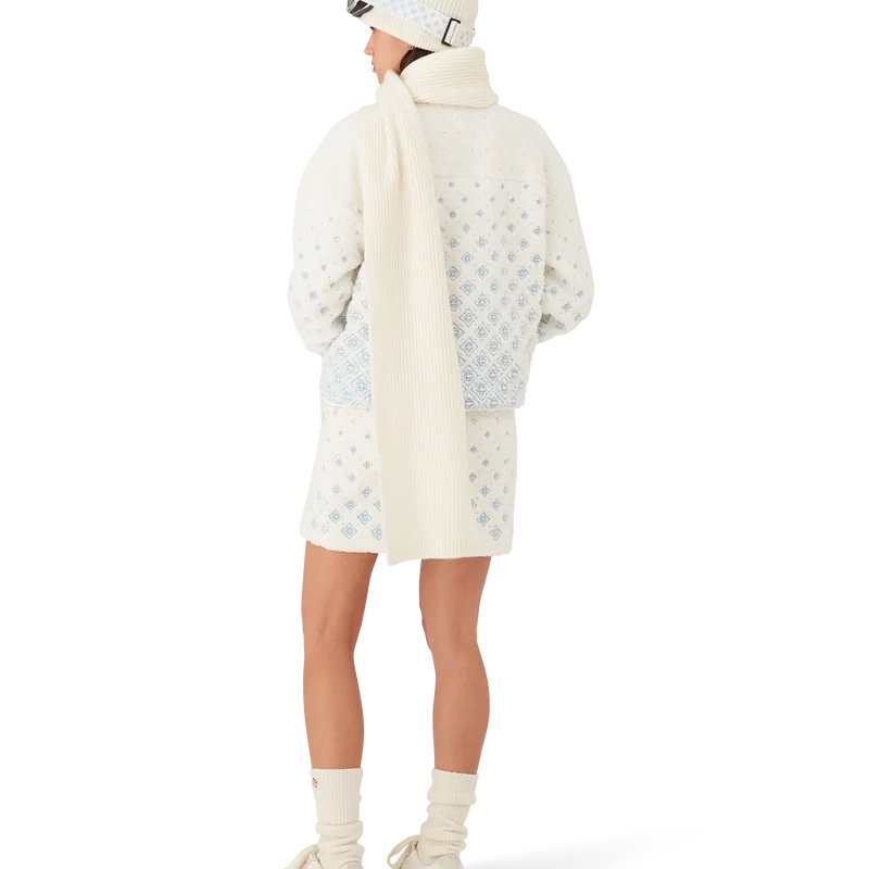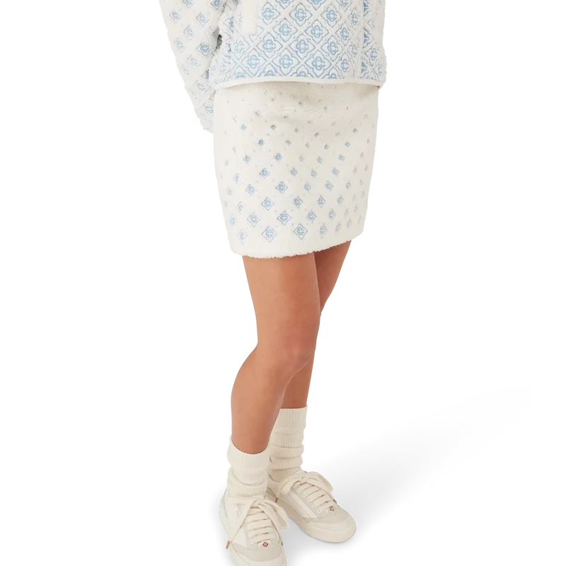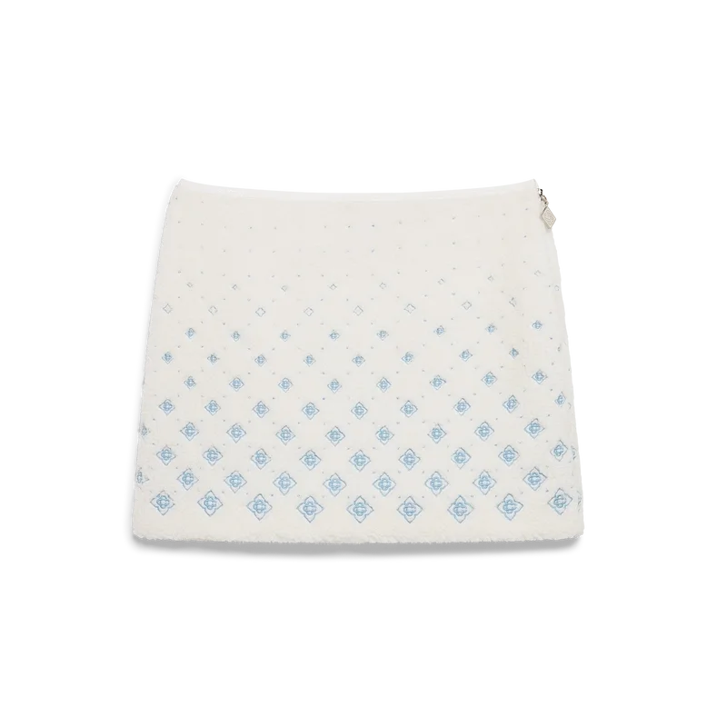 La minifalda de forro polar con monograma bordado en degradado es un refinado diseño de Apras-Sport confeccionado en tejido técnico de forro polar en color blanco, inspirado en las elegantes siluetas del paisaje rural japonés en invierno. Se inspira en la elegante sencillez de la vida en el pueblo, donde la forma se une a la funcionalidad en un diseño atemporal, y los paisajes nevados inspiran una belleza minimalista. Este modelo presenta el diseño de monograma característico de la casa, con cierre de cremallera lateral y tirador metálico plateado.