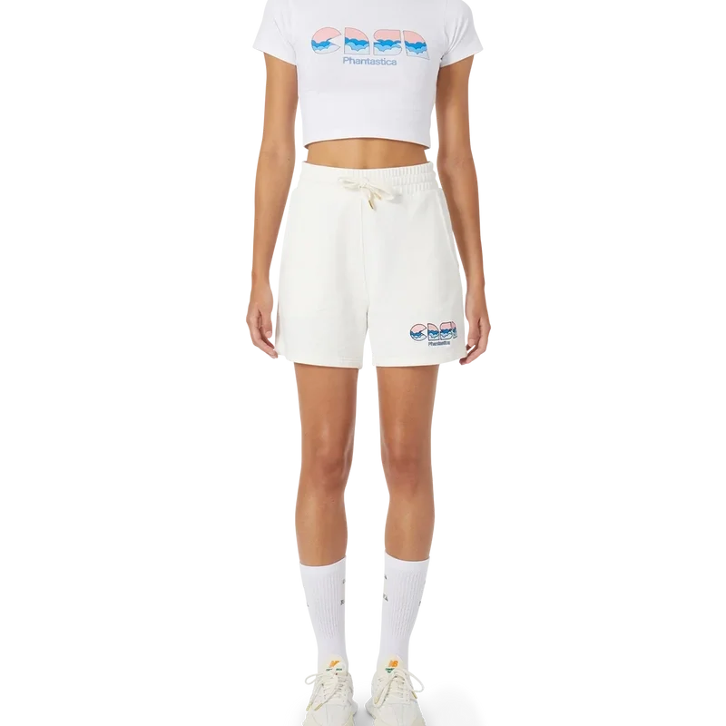 Los pantalones cortos de chándal Casa Clouds presentan un diseño bordado en tonos azules y rosas inspirado en «Phantasticas», el nombre original de los alucinógenos. El diseño busca nuestra reconexión con la tierra y manifiesta la capacidad de la naturaleza para sanar el espíritu. Se completan con un cordón de cierre con puntas doradas, bolsillos laterales y traseros, y la etiqueta de la marca Casablanca Paris. Diseñados para ofrecer un ajuste holgado y una cintura alta.