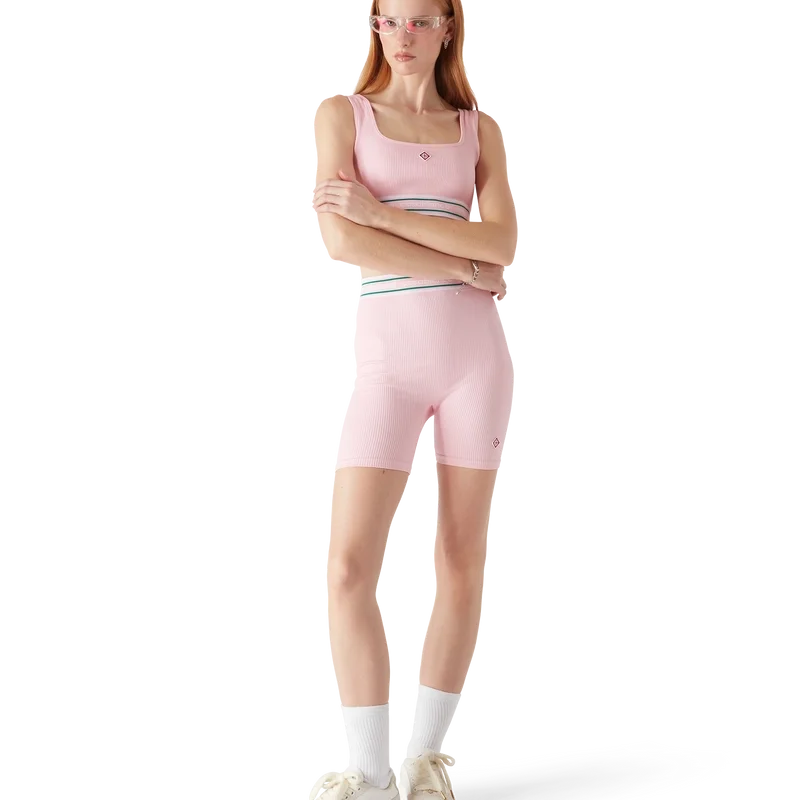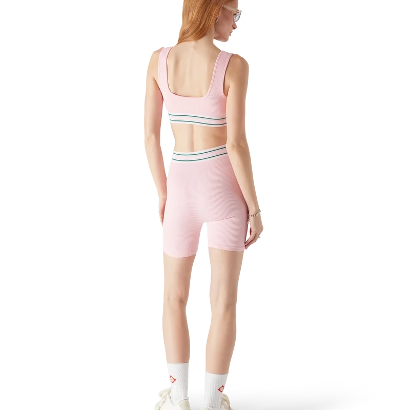 Los pantalones cortos de la marca Casablanca presentan un diseño estilizado inspirado en la ropa deportiva con el parche del logotipo de diamante característico de la casa. Confeccionados en un tejido elástico sin costuras, ofrecen una silueta refinada con una construcción minimalista. Se completan con un corte favorecedor y una cintura elástica con el logotipo de Casablanca y detalles de rayas de la casa.
