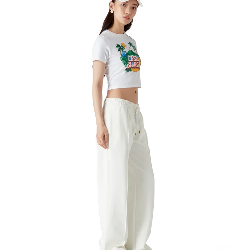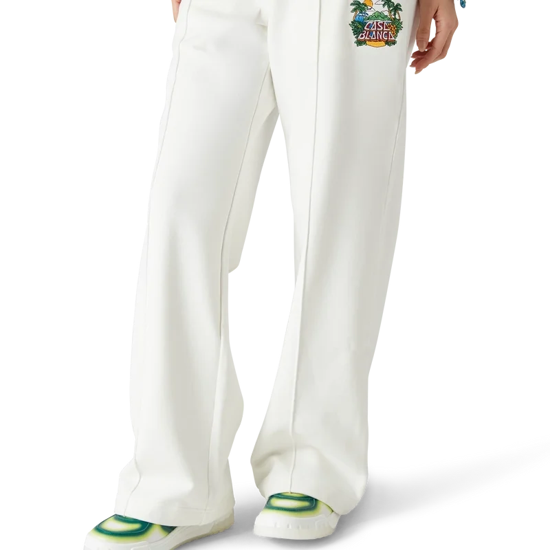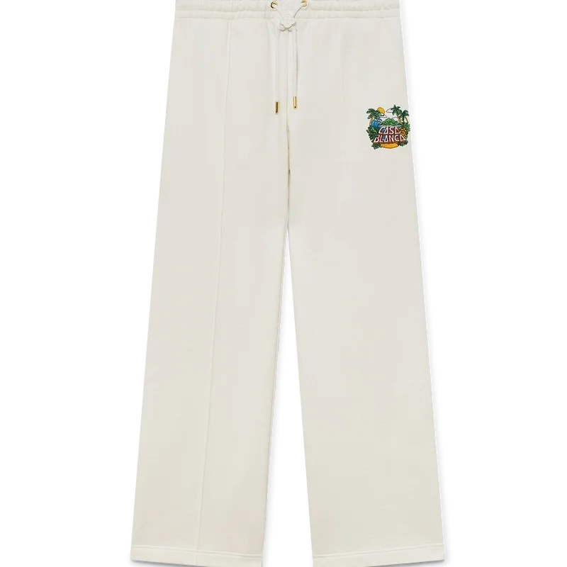 Los pantalones de chándal Casa Beach Wave presentan un diseño estampado confeccionado en tejido de algodón orgánico y cuentan con un diseño característico que hace referencia a un recuerdo que uno compraría en unas vacaciones en la playa. Se completan con una cintura elástica, cordón de ajuste con puntas doradas, bolsillos en las costuras y un bolsillo de parche en la parte trasera.