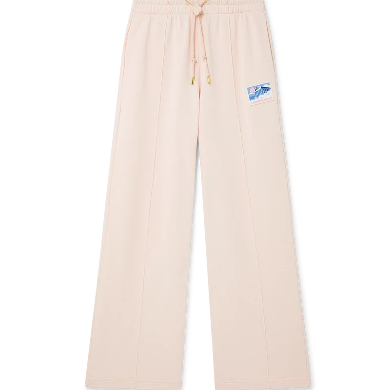 Los pantalones de chándal Greek Temple son un diseño deportivo de corte recto confeccionado en tejido de algodón orgánico. Cuentan con cintura elástica, ojales chapados en oro, cordón de ajuste con puntas doradas, bolsillos laterales en la costura interior, un bolsillo trasero de parche, costuras plisadas y un parche de silicona.<!–