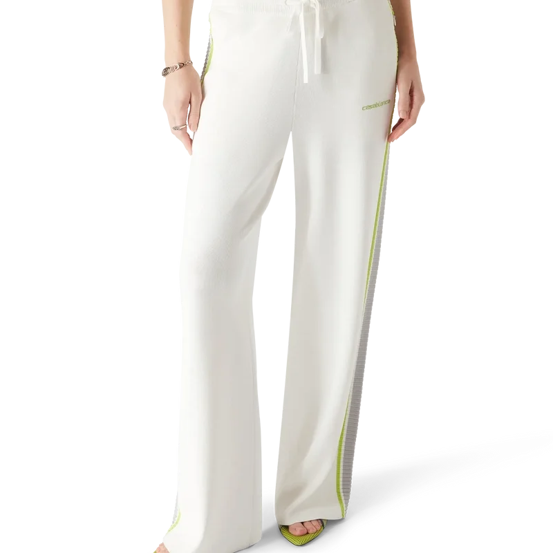 Los pantalones de tenis presentan un diseño de corte recto inspirado en la ropa deportiva y lucen el logotipo Casablanca de la casa. Cuentan con una cintura elástica acanalada, cierre con cordón, bolsillos en las costuras, un bolsillo de parche trasero, detalles en los paneles laterales y una silueta holgada.