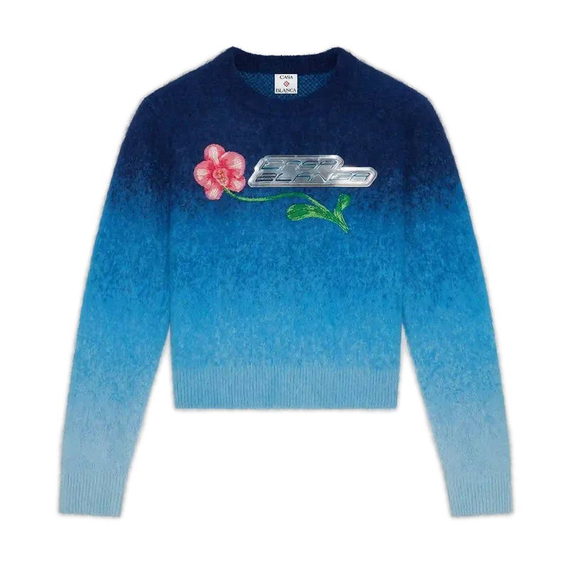 La sudadera Gradient Orchid es un diseño refinado de manga larga que presenta el distintivo logotipo de la orquídea de la casa, incorporando la marca Casablanca. Se completa con cuello, puños y dobladillo acanalados. El diseño se remata con un dobladillo recortado para un acabado moderno y desenfadado.