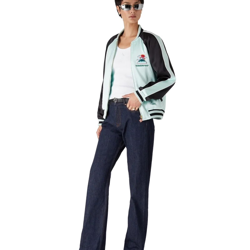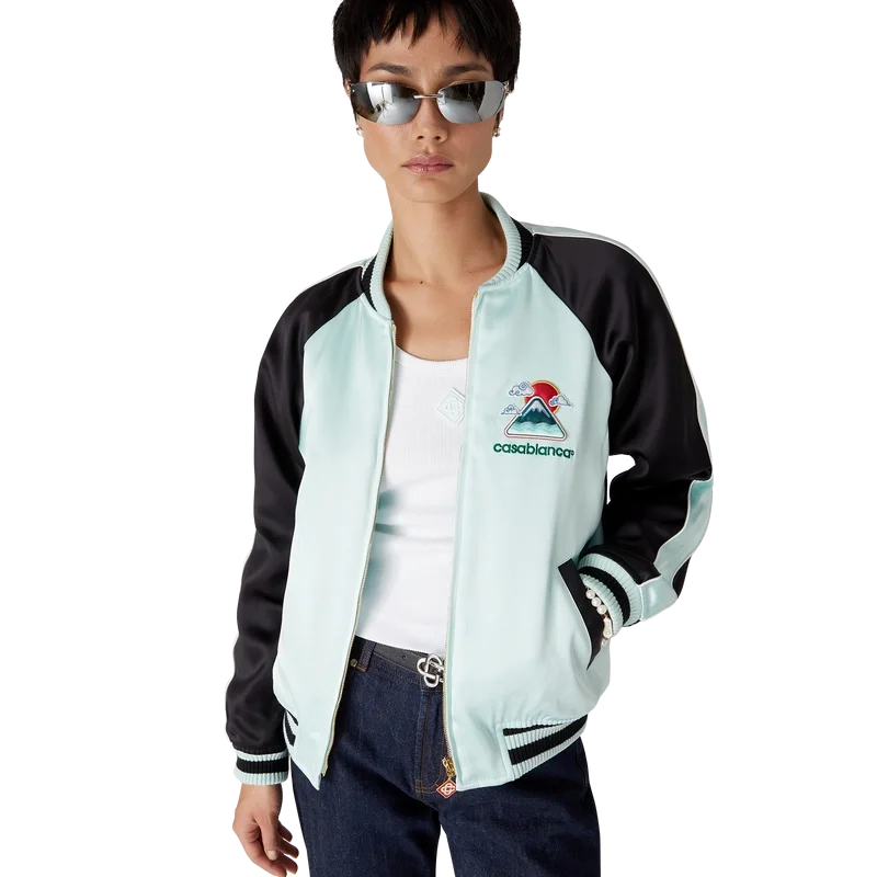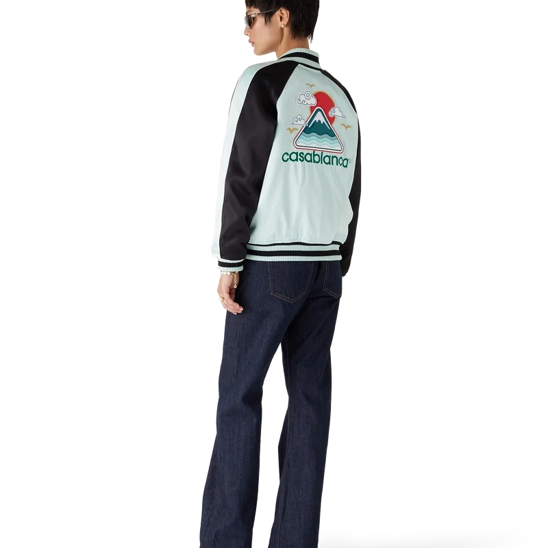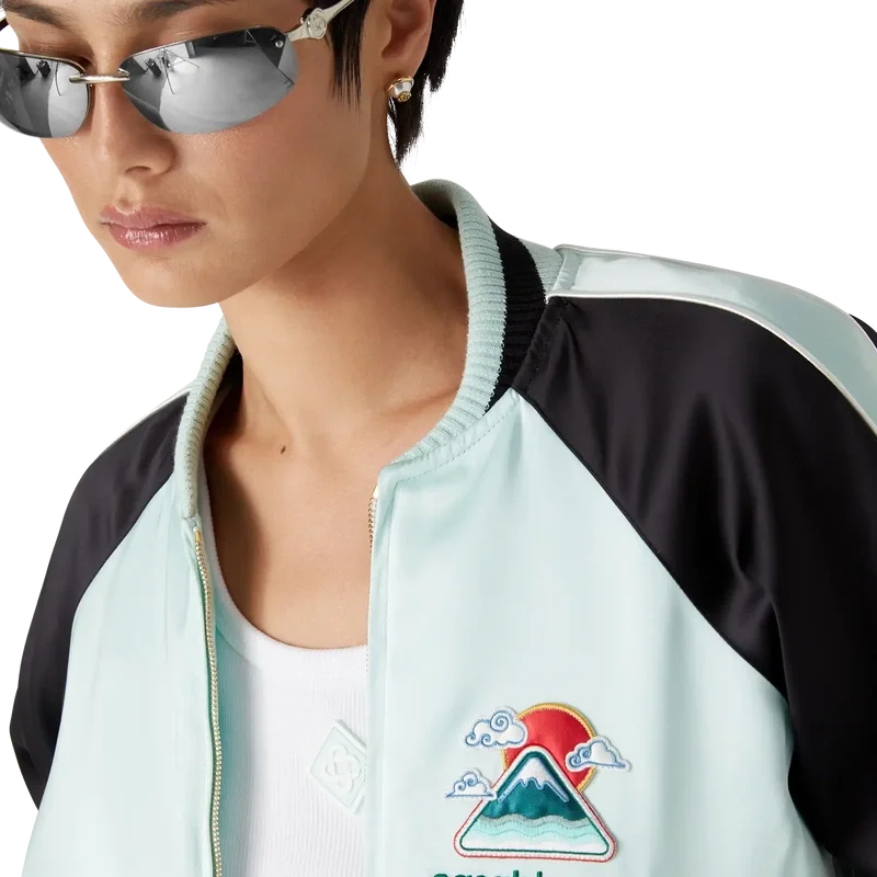 La chaqueta bomber de satén bordada es una chaqueta de estilo bomber tradicional, confeccionada en tejido de satén con un diseño inspirado en la rica iconografía japonesa, que transmite un fuerte mensaje visual con solo unas pocas líneas y colores, lo que la convierte en uno de los emblemas de la colección.
