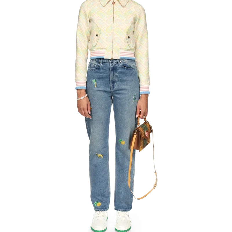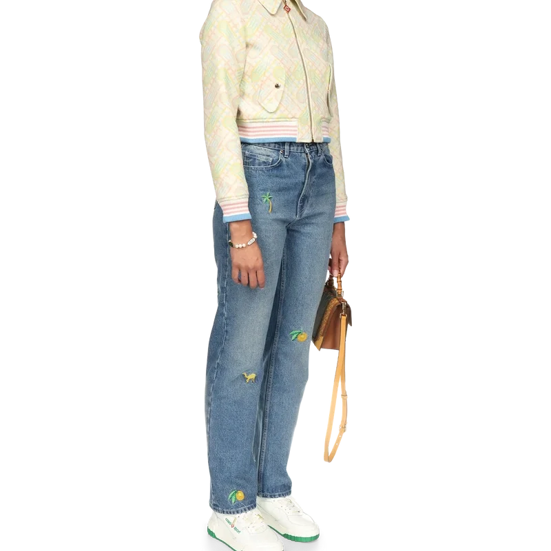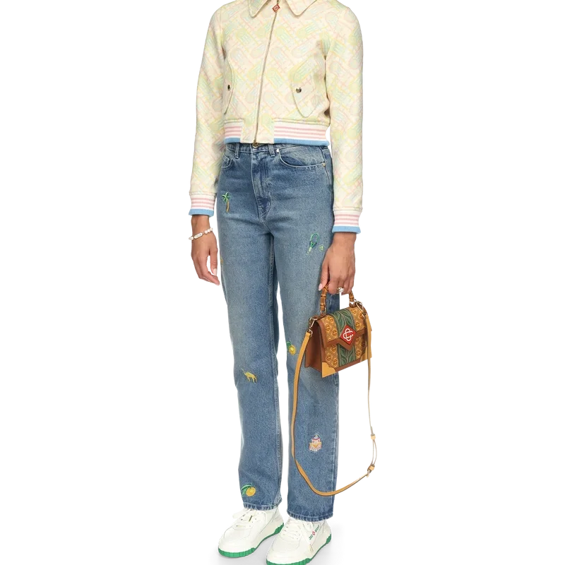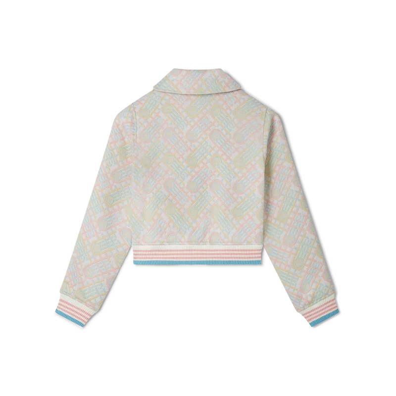 La chaqueta bomber Ping Pong es un modelo de pantalones cortos de manga larga con una silueta familiar que presenta el estampado característico de la casa con pelotas de ping pong en movimiento, tomado de la colección Japan. Confeccionada en tejido de lana virgen con monograma de ping-pong y rematada con bolsillos delanteros con herrajes chapados en oro, ribete en contraste en el dobladillo y los puños, cuello, cierre frontal con cremallera y logotipo de diamante, y etiqueta con la marca Casablanca.