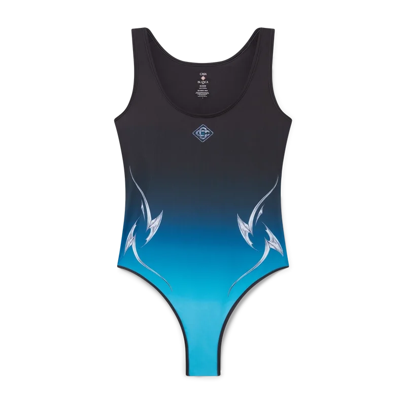 El bañador Blades presenta un diseño estampado confeccionado en un tejido técnico transpirable para baño, con un estampado que juega con el contraste entre dos sensaciones opuestas: la nitidez de la hoja y el frío cromo plateado, en contraste con la calidez de la naturaleza, como los atrevidos tonos rosas y rojos de una flor de orquídea. La incorporación del agua aporta un elemento fresco y nítido al diseño. Se completa con un corte alto en las piernas, cuello redondo, espalda con aberturas y el logotipo del diamante característico de la marca en el pecho.