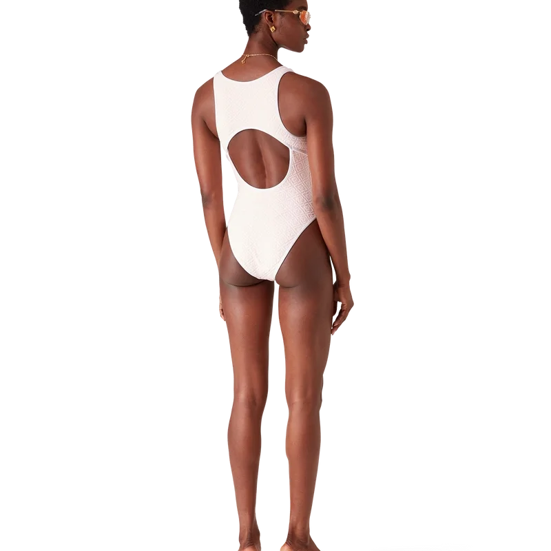 El bañador Monogram es un diseño de una pieza que presenta el estampado Monogram de la casa y el emblemático logotipo de diamantes. Se completa con ribete en contraste, corte alto en las piernas, espalda con aberturas y cuello redondeado.
