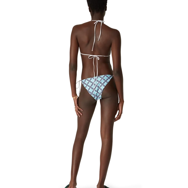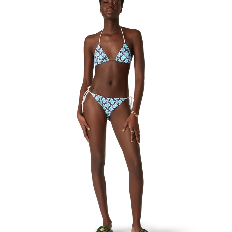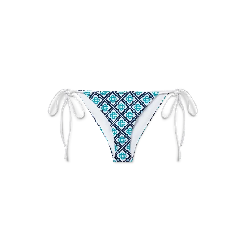 La braguita de bikini Monogram es un diseño estampado confeccionado con un tejido técnico transpirable, que presenta un monograma degradado que ofrece una versión renovada del estampado emblemático de Casablanca. Rematada con ribetes blancos y cierre de cordones, esta pieza cuenta con el remache CC entrelazado característico de la casa, y está pensada para llevarse con su top a juego.